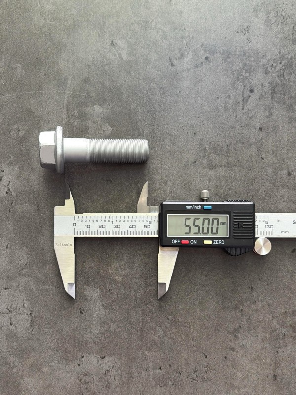 Болт фланцевый, высокопрочный, мелкий шаг резьбы, без насечек. Болт российского производства. Стандарт: DIN 6921. Можно использовать, как аналог ГОСТ ISO 4162-2014. Диаметр резьбы: 12 мм. Шаг резьбы: 1,25. Длина болта: 55 мм. Длина резьбы: 30 мм. Размер "под ключ": 19 мм. Класс прочности: 8.8. Покрытие: цинк-ламель. В соответствии со стандартами, длина болта измеряется от опорной части головки до конца фаски, которой завершается его резьбовой стержень.