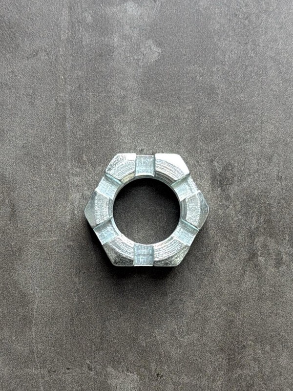 Гайка корончатая, прорезная низкая М27х1,5 ГОСТ 5919-73, класс прочности 10, покрытие цинк ГОСТ 5919-73